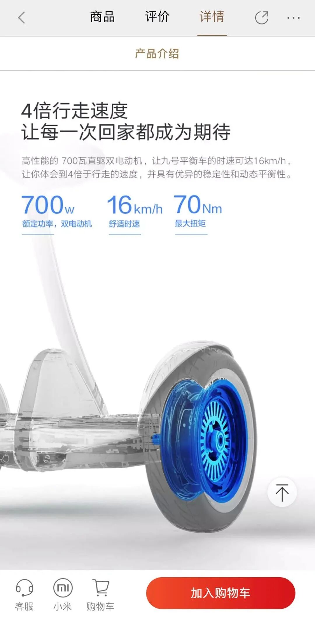 比如在小米有品的小米九号平衡车广告页面上,就直接指向了上下班通勤需求: