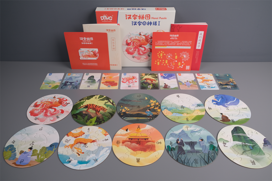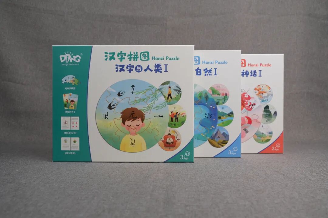 这次推出的启蒙町汉字拼图产品,包括3辑:《汉字与人类》、《汉字与自然》和《汉字与神话》。