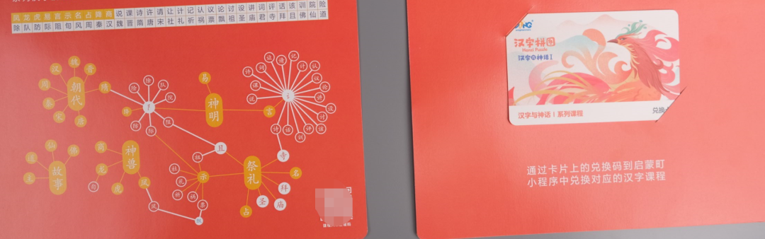 字源识字课兑换卡和介绍说明,可兑换60-65节的《字源识字课》,每节讲解1个汉字,包括10个核心汉字,以及基于核心汉字扩展出的50个扩展汉字;