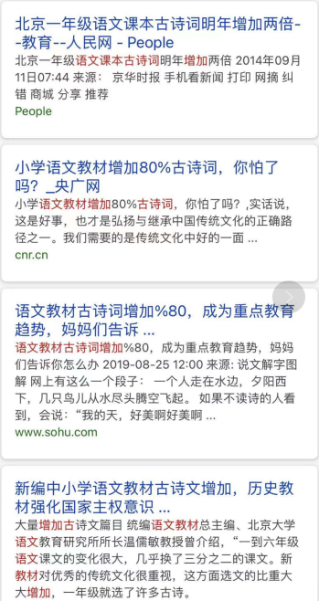 第二个重要的变化,是大量增加古诗词的内容,几乎这六七年来,每年各地方各版本的语文教材改革,都会出现大幅度,甚至几倍增加古诗词内容的新闻。
