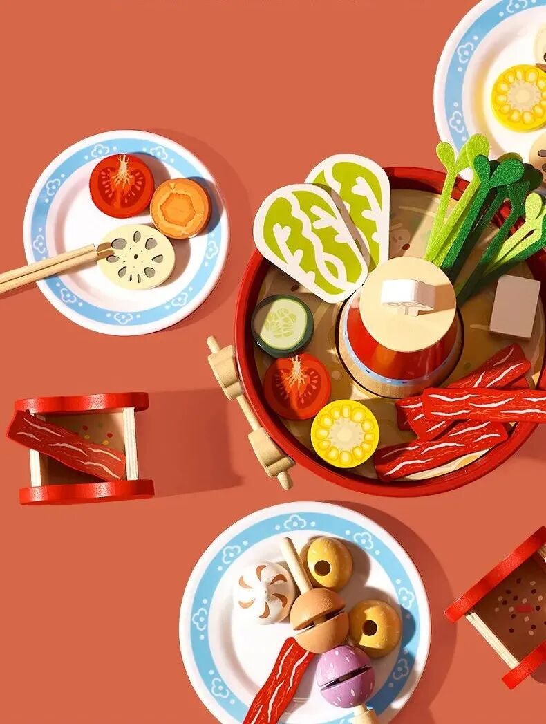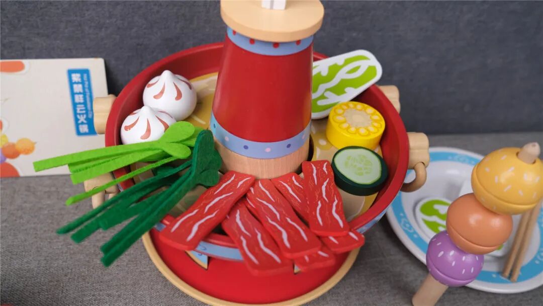 惟妙惟肖的丰富菜肴,看起来就是很好吃的样子,但是要注意玩具不能吃哦。实在想吃的话,就在家或者出门吃一顿真的火锅大餐吧。