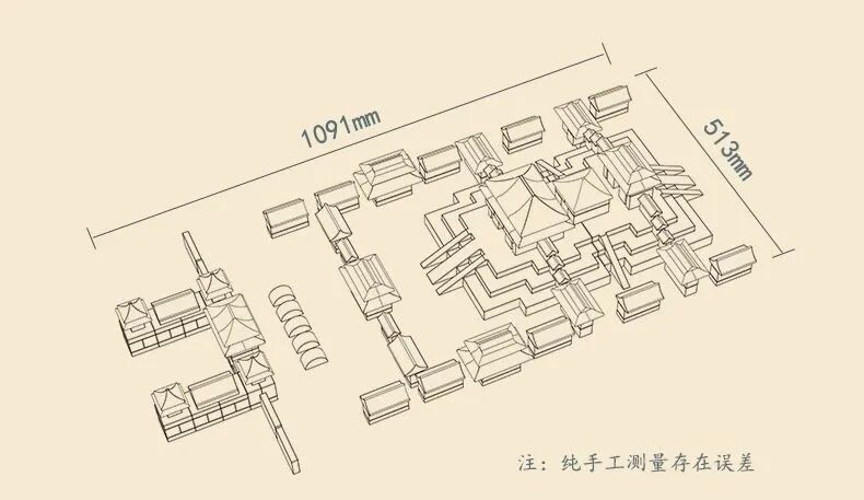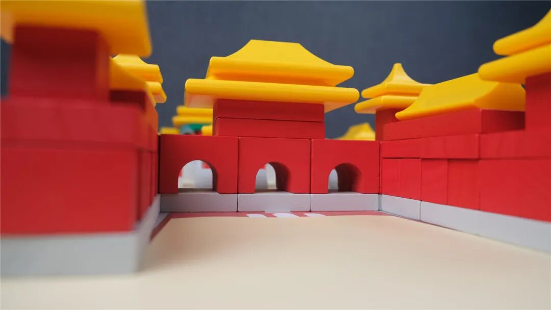 通过木质+塑料的零件搭建构成了活灵活现的故宫场景。
