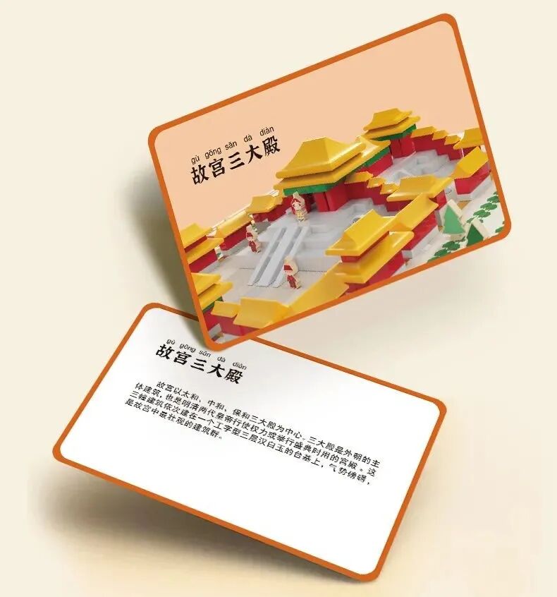 故宫积木附赠了精美的建筑通识卡,可以了解帮忙小朋友了解故宫。