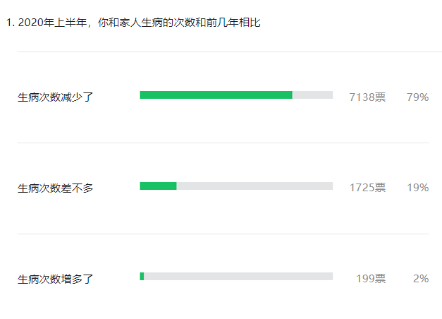 不过经过这一年多疫情的洗礼,我们对于“病毒”、“感染”,这些相关的医学概念,了解得更加深入了。一年前我们曾经做过一次投票,当时有差不多80%的同学发现,因为疫情期间更注意日常卫生的原因,得其他传染疾病,比如感冒这些的次数也减少了。
