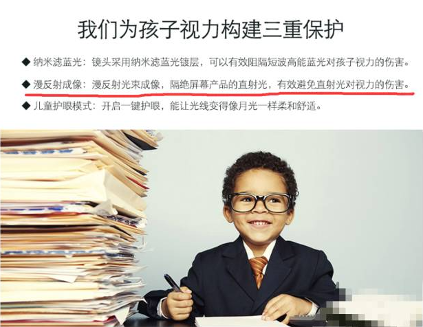 在广告的宣传中,投影仪,尤其是以儿童为目标,用保护视力为主要卖点的投影仪,会提到很多听上去可以护眼的特点,那么这些真的可以帮助宝宝保护视力么?