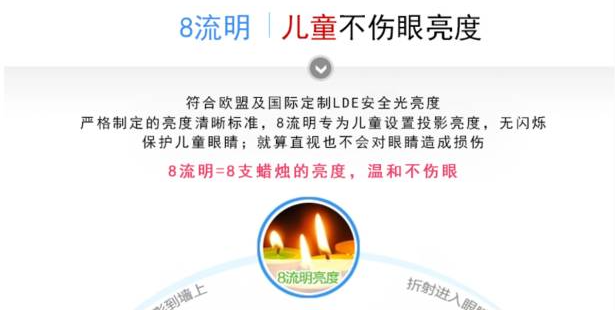 所以上面那种只有8流明的“低流明不伤眼”投影仪就当个笑话看好了,而其他儿童投影仪,大多也只有两三百流明。几千流明的普通投影仪在白天的播放效果都很一般,这类几十几百流明的产品,其实只适合在夜晚使用。在白天明亮的环境下,孩子是很难看清内容的。这些模糊不清楚的图像,就如在昏暗的灯光下阅读一样,会增加孩子的视觉疲劳。