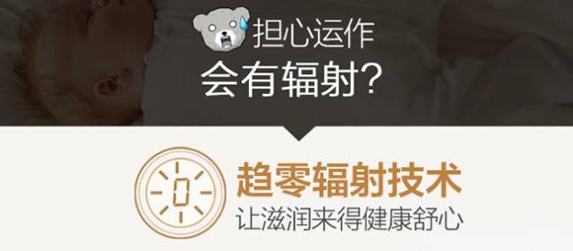 而宣称“无辐射”的广告,也是判断一个品牌是否有品德问题的标准。本来任何一台加湿器,除了用紫外线杀菌的那些外,不管用什么技术,都不可能产生对人体有害的辐射。而用“无辐射”做噱头,无非就是吓唬用户说其他机器有害人的辐射。