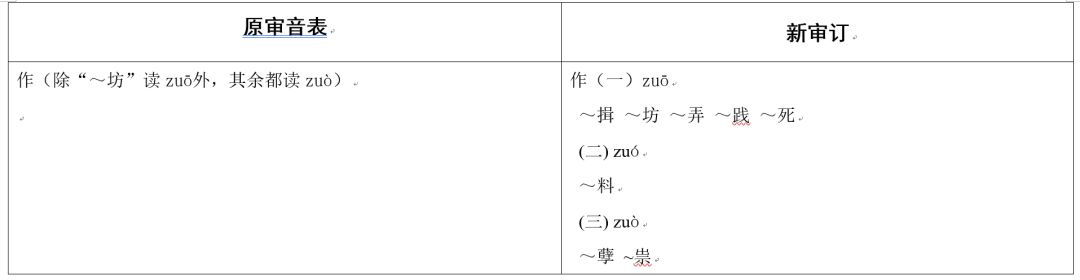 还有纠正了一些85版里明显“想当然”的错误,比如那篇爆款文章中明显的错误:取消了“作”的一声和二声,这个就是85版里的bug,而新版里面列出了作的三种读音。