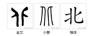 “北”字就更有意思了,这个字的来源则是两个人背对对方站着。为什么这会是“北”呢?其实“北”字原本是用来表示“后背” 的“背”。比如成语中的追亡逐北,不是往北方追击敌人,而是说看着敌人的“后背”在追击。