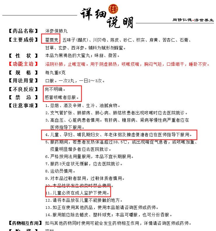 在我们的检索中,目前数十种加入了罂粟壳的中成药止咳药物里,并没有找到哪一个写明了儿童禁用。这甚至包括一些大量使用罂粟壳的药物。