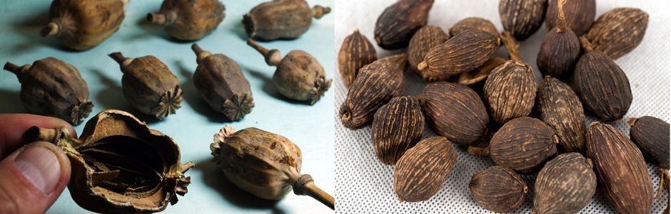▲左边是罂粟壳,右边是草果,差别是头上有没有戴“帽子”