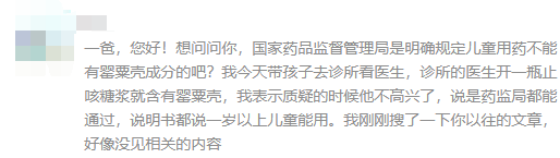 遇到这样的医生多了,家长对于整个医疗体系专业度的信赖感自然也就少了 —— 家长怎么能信任给娃开含罂粟壳止咳药的医生呢?提出一下质疑,还被怼。
