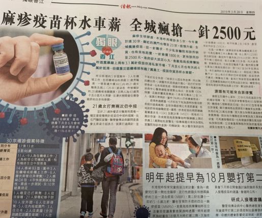 香港此次麻疹集体恐慌的背景,是去年年末开始全球范围内的麻疹爆发。尤其是美国屡次爆出麻疹的相关疫情,我们在2月的一篇文中曾经写过(点击阅读:HPV? 麻疹?未来更可怕的传染病,叫疫苗犹豫症)。不过和美国不同,香港澳门属于麻疹免疫控制较好的地区,此次爆发主要是由于菲律宾发生了麻疹大爆发,麻疹随着大量劳务人员进入香港而导致部分未接种疫苗,或者免疫失效的人群被感染而发生的。