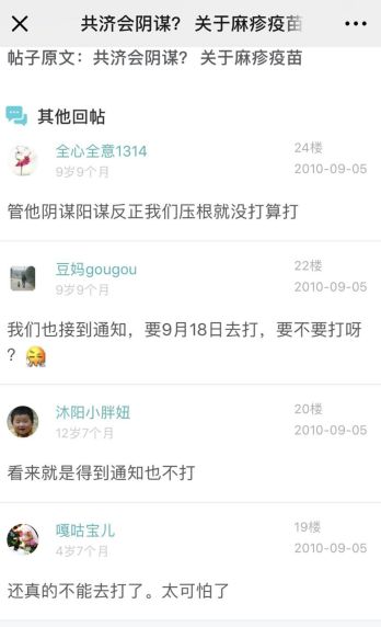 现在在一些居然还没死掉的母婴论坛上,仍有当时“共济会阴谋”贴子下面,几乎完全一致的家长回帖:“太恐怖,不去打了”。