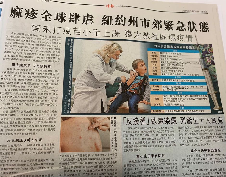 根据香港《明报》报道,截止今年3月19日,菲律宾记录麻疹病例22967例,死亡333人。而大批来港的菲佣也引发香港本地的麻疹流行,感染了多名婴幼儿和机场工作人员。这引发了香港居民的集体恐慌,麻疹疫苗一针难求。