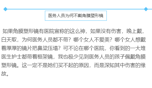 在读者分享给我们的一篇攻击角膜塑形镜的文章中,我们看到了一个很经典的“罪证” —— 因为医生还戴框架镜,所以就认为医院的各种近视相关手段,比如OK镜,比如近视手术是无用或者有危害的。