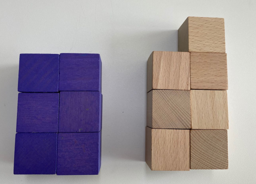 所以养成数形结合的习惯,也是数学启蒙阶段重要的一个环节。比如前面用积木进行数字认知可能让有些家长觉得多此一举。但简单的积木其实也可以用来辅助认知更复杂的数学概念。