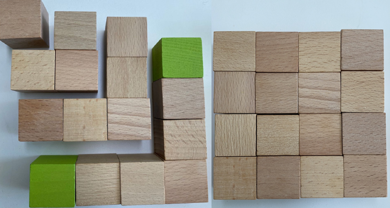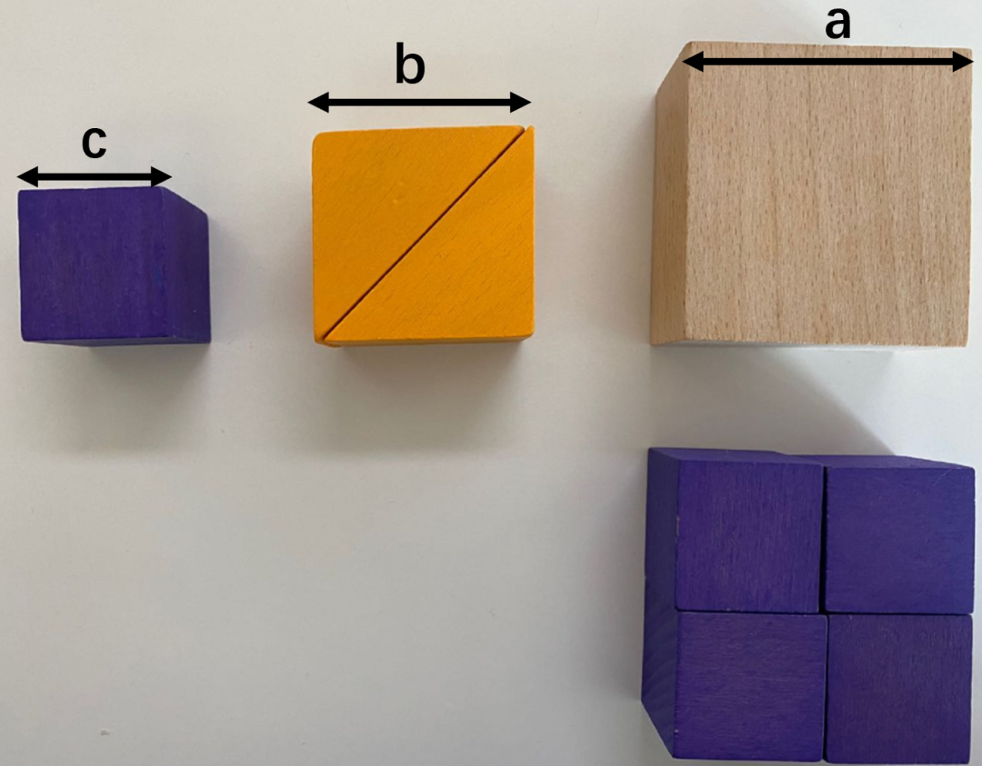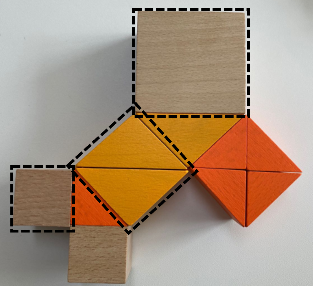 这位同学问为什么摆了三个正方形,而不是用长度为3-4-5的积木摆直角三角形就可以了。