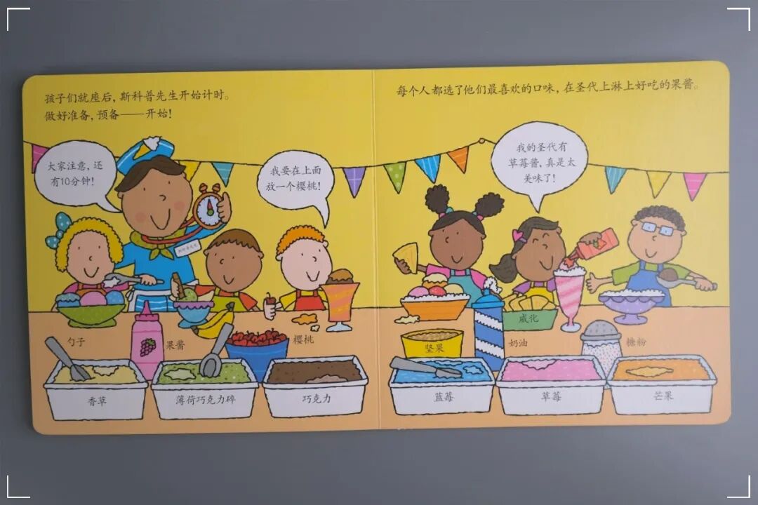 很多小朋友都喜爱甜食,如果能吃上一个冰激凌,是不是会很开心呢?进入书中的甜品店,一起来参加斯内普先生举办的超级圣代比赛吧。你希望你的圣代是香草,巧克力,还是芒果味的呢?来看看最后的获胜者获得了一座怎样的冰激凌奖杯吧。