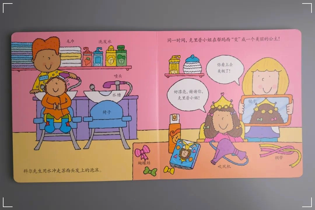 不知道小朋友们有没有到理发店里剪过头发呢?在这本书中,讲述了一个克里普小姐为玛丽和苏西的变装派对打造特别的发型的故事。