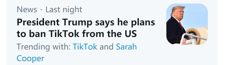 而推特干脆把萨拉·库珀的名字列在了川普封杀TikTok的新闻相关热词上。