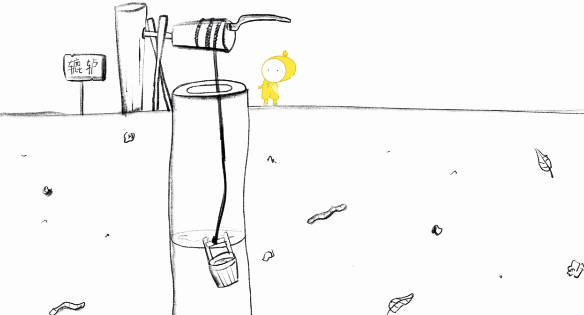 白泽在用水桶打水,为什么可以将水桶提升和放下。