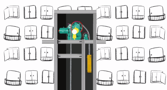首先将两种不同的电梯进行横截面的解剖分析,清晰展现电梯的内部工作原理。