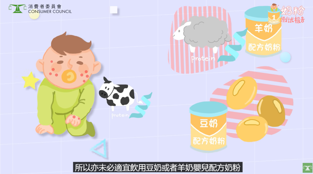 常见消费误区2:消费者委员会提醒,一些对牛奶蛋白过敏的孩子,很可能对大豆或者羊奶成分也过敏。因此如果确认孩子对牛奶蛋白过敏,应该在医生的指导下选择适合的配方奶粉,而不是看广告就买大豆配方奶粉或者羊奶配方奶粉给孩子。
