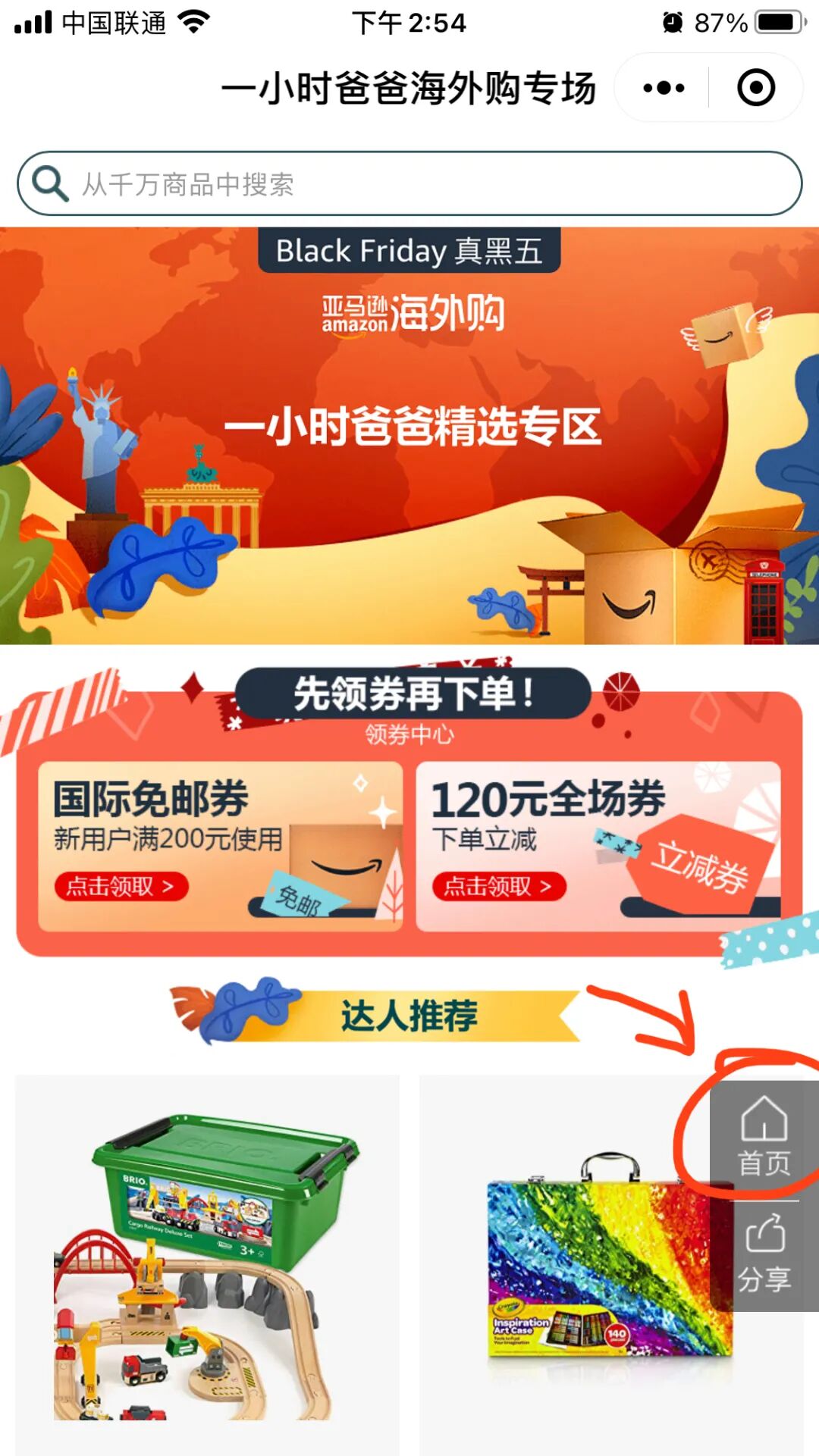 1、 点击文中的亚马逊海外购小程序,进入本次黑五推荐专场