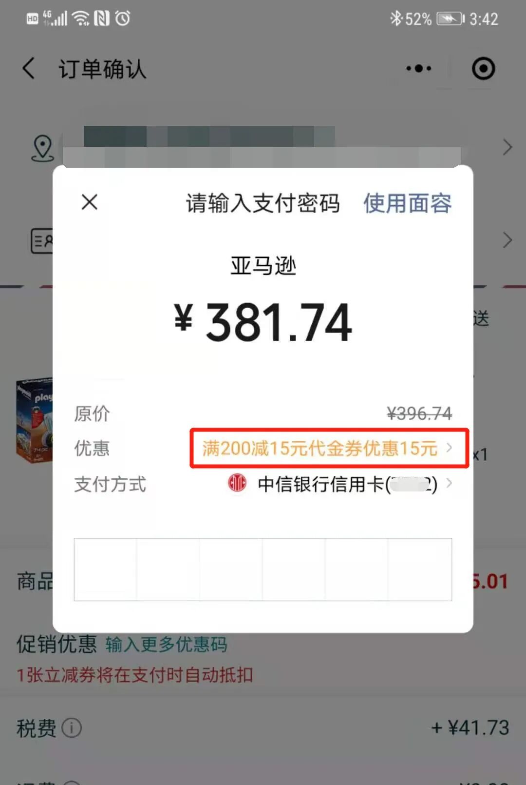 *领取成功后,在亚马逊海外购小程序订单结算页面,选择微信支付,自动核减立减券,多张立减券不可同时使用,用户可根据订单金额满足的条件自主选择可用的立减券;