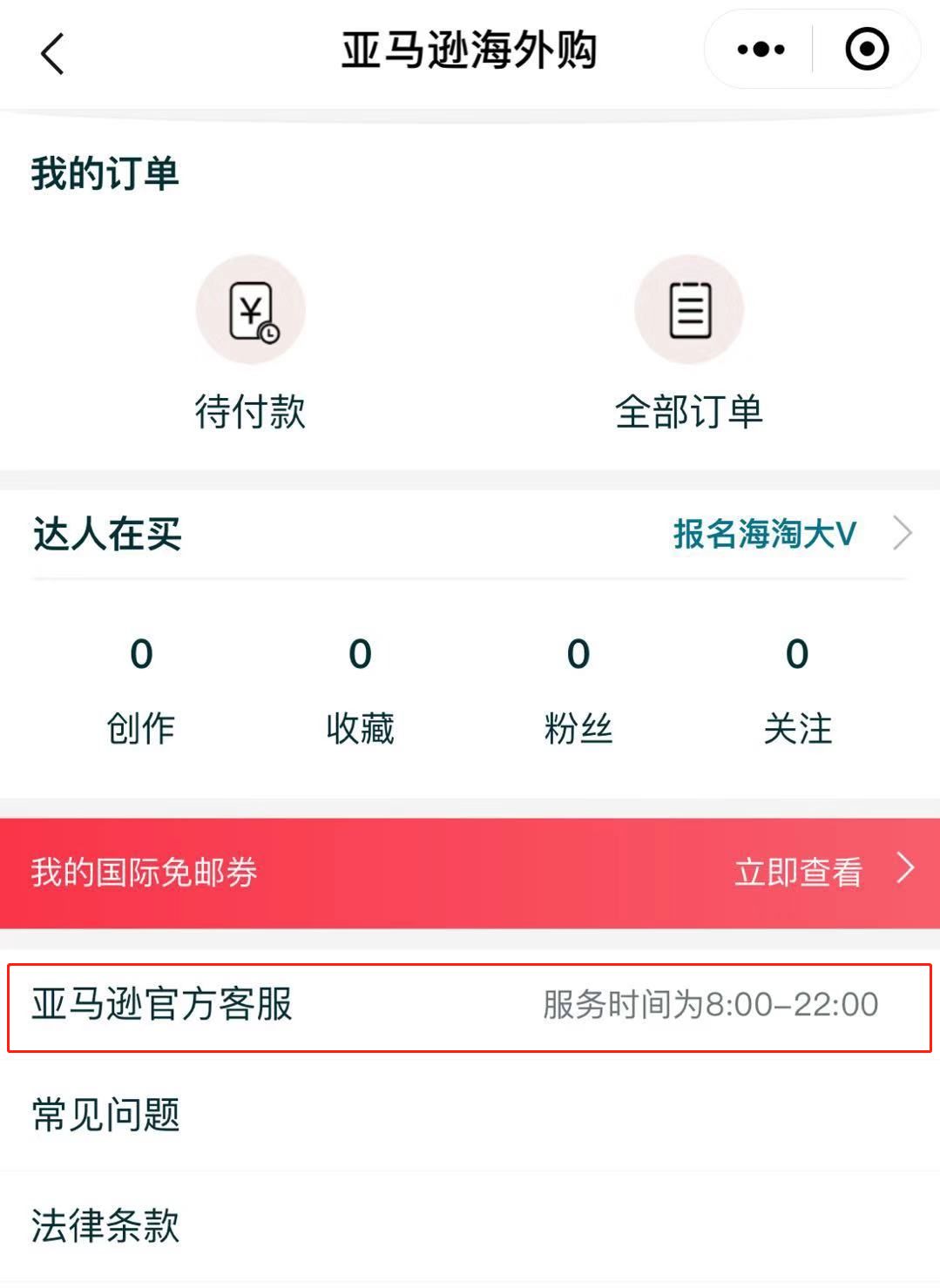 由于小程序是通过微信登陆的,所以成功下单后的订单信息需要在亚马逊小程序中查找。(首页——我的——全部订单)