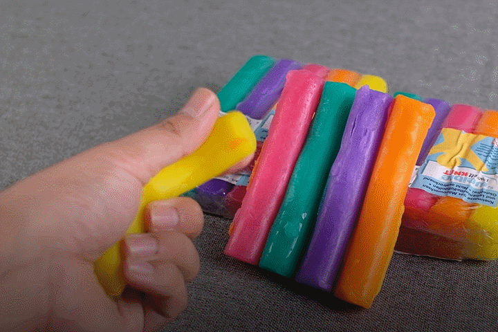 在室温的环境下,温感彩泥刚拿出来的时候是一个相对较硬的状态,有点像一只冰棒。