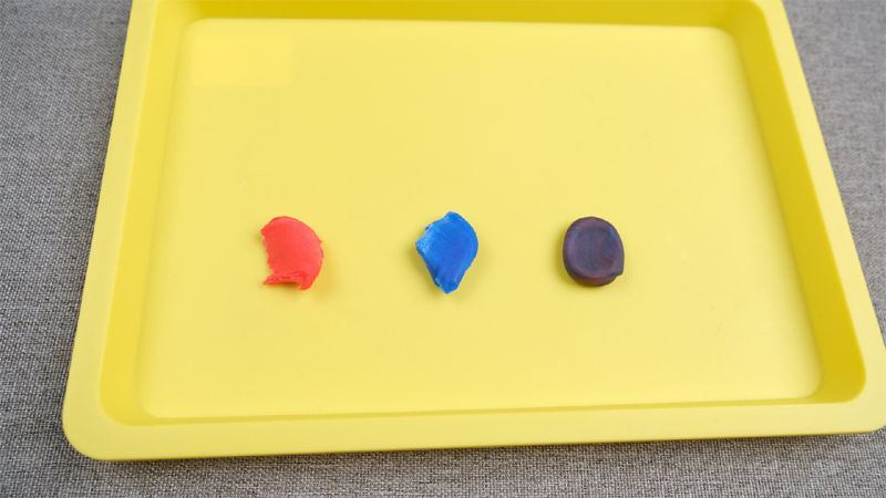 温感彩泥能够帮助孩子们创造出自己想要的艺术色彩,用两种不同的颜色,比如红色和蓝色,通过控制混色程度就可以调色出独一无二色彩。