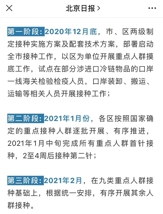 最后还有一个问题,就是什么时候我会去接种?答案是春节之后。因为我不属于规定的9类重点人群,在北京需要排到2月之后才能接种。毕竟作为普通居民,感染风险不高,早期的疫苗库存还是留给更需要防护的工作人员,等到帝都通知普通居民可以预约接种的时候,我就会去了。