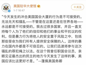川粉对国家最高立法机构的冲击,已经超出了美国政府的容忍底线,因此副总统彭斯直接“背叛”了川普,呼叫救援镇压驱赶了川粉。最后失败的川普只好出来发布录像讲话,要求粉丝离开。