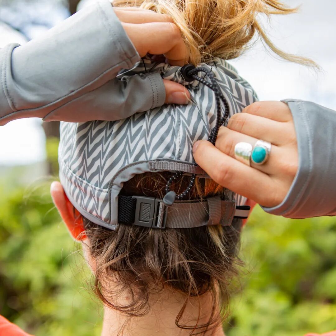 一般帽子的系绳最多只有调节长度的设计。但Sunday Afternoons在这里多加了一个插扣,平时没有差别,但有外力的时候,就会打开。这样孩子在玩耍时,如果帽子不小心被人或者物体拉扯,这个插扣会立刻分离,不会出现系绳挂住颈部发生窒息的风险。