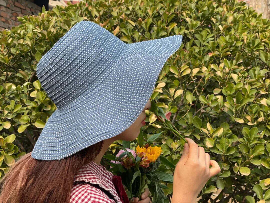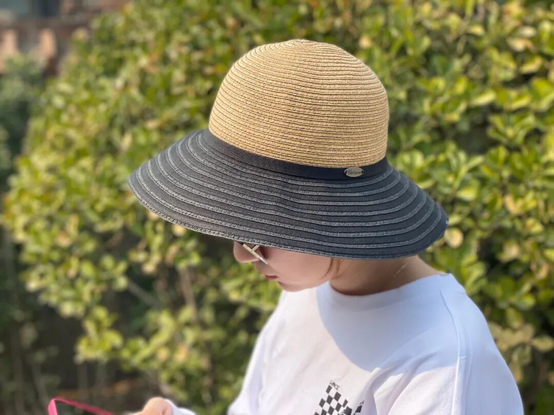 8.5厘米黑色帽檐可以有效遮挡阳光。需要注意的是这款帽子是纸纤维编织,不防雨,下雨的时候注意收纳。