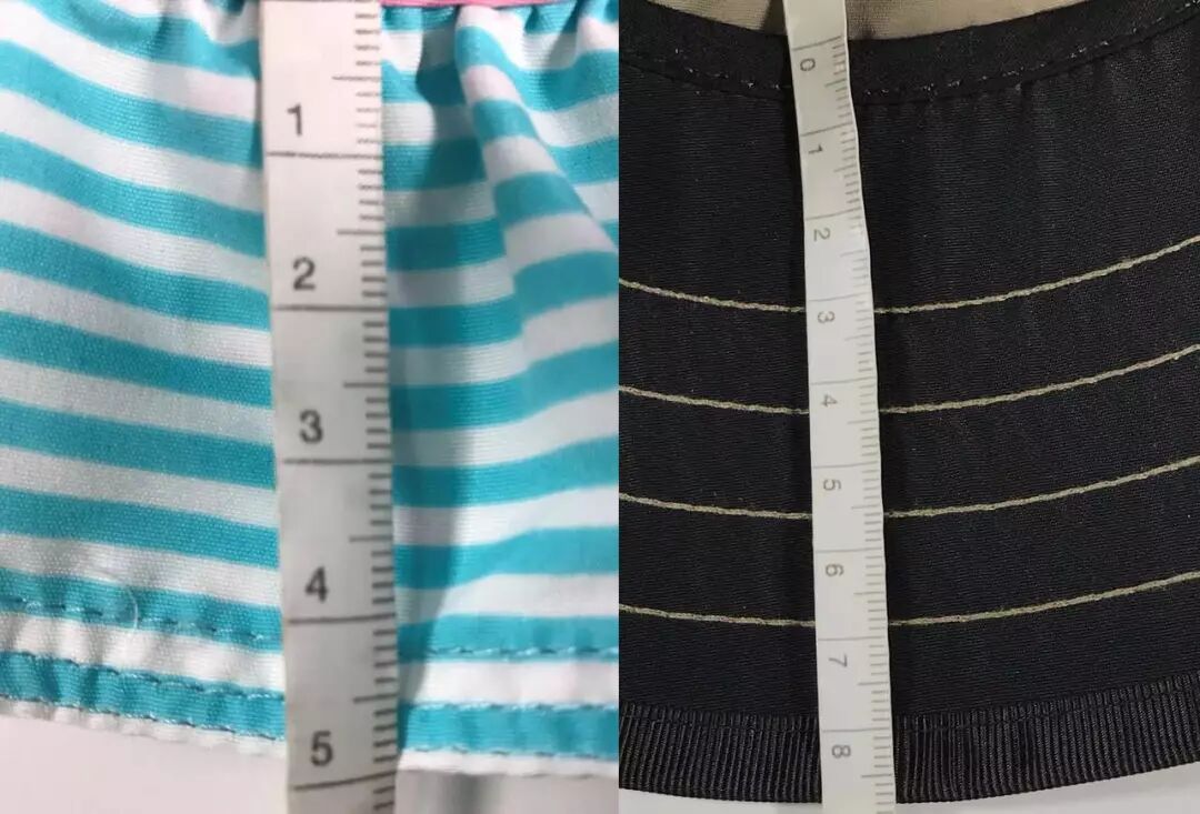 我们对比了一下,两个尺码长度相差不大,在38厘米左右,主要在臂围的区别,S/M码上臂围19厘米,L/XL码上臂围22厘米。