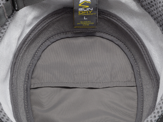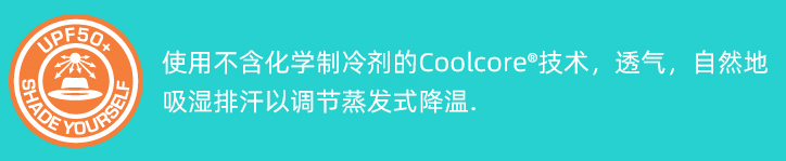它的材料是专利Coolcore®冷感面料,并内附吸汗带。特有的太阳眼镜固定槽方便收纳太阳镜。带有软泡棉的帽檐可在水中漂浮。