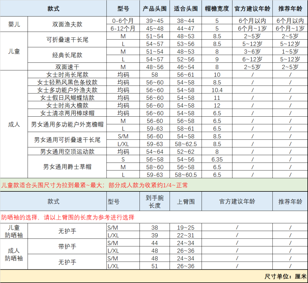 女士防晒帽我们今年选择的比较多,特点及选择建议见下图。