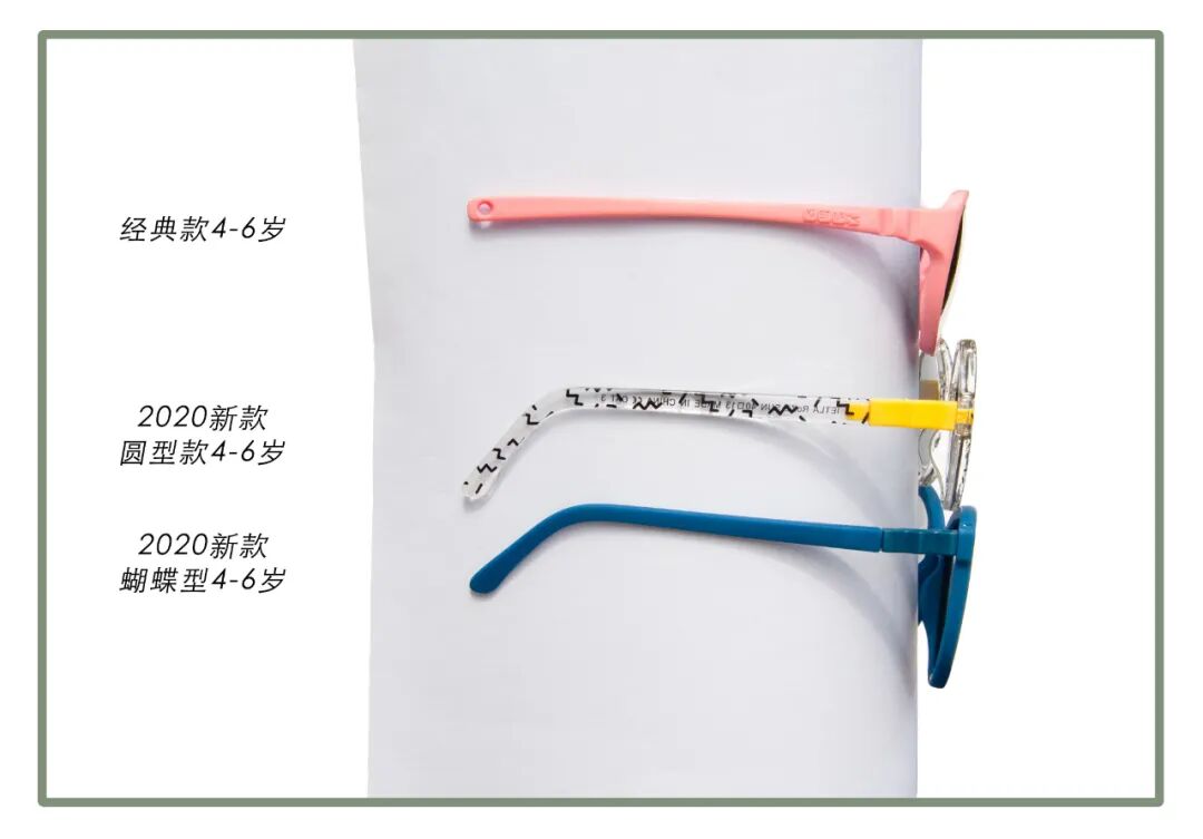 2020年上市的款式有面向1-2岁和2-4岁两款,有2020经典款和2020时尚款2种款型。与传统的T2款不同的是,新款采用3类平光镜片。