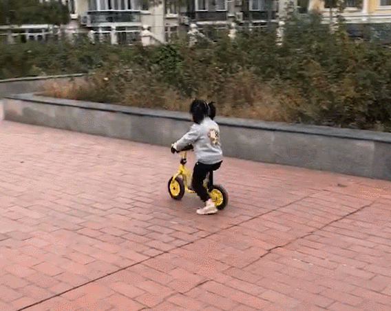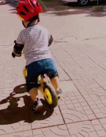 而到了20个月的时候,他已经可以开心双脚离地滑行,据妈妈嘚瑟说:当时他是小区的平衡车小明星,因为经常被大家夸,所以他也特别有成就感特别爱骑,摔跤了就自己扶起来骑上接着走。