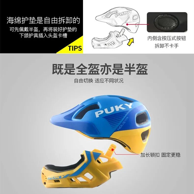 头盔可以自行进行拆卸,全盔半盔任意切换。