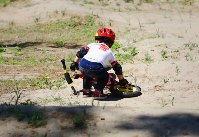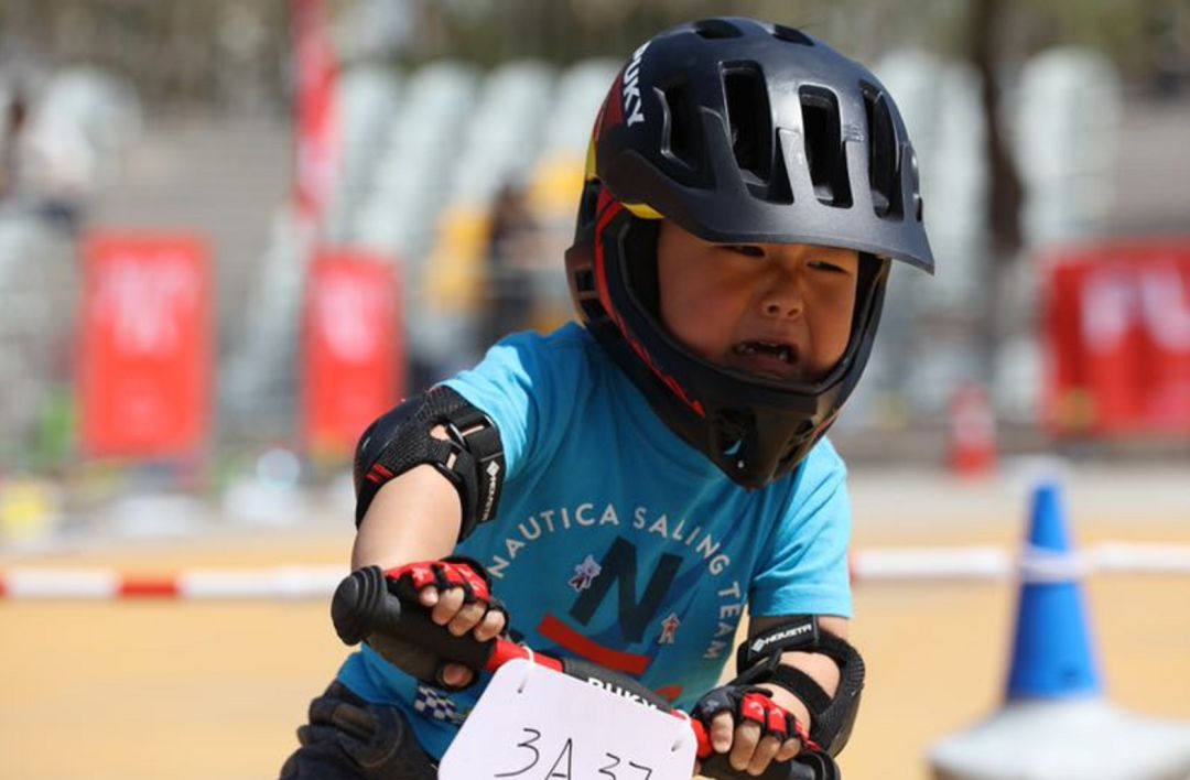 还收到了这样一张相片:在摔倒之后发现自己没办法追上其他人,很伤心,但是还是坚持一边哭一边骑冲向终点。这才是我们更想大家鼓励孩子通过运动所获得的精神,而不是简单地锻炼身体,获得名次。