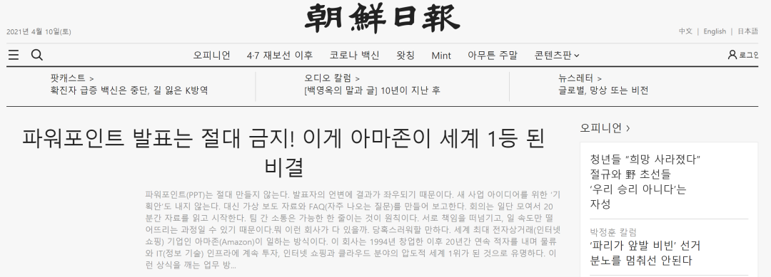 除了汉字(中文和日文),还有另外一种文字看上去也像方块,那就是韩语。(韩国《朝鲜日报》网站截图)
