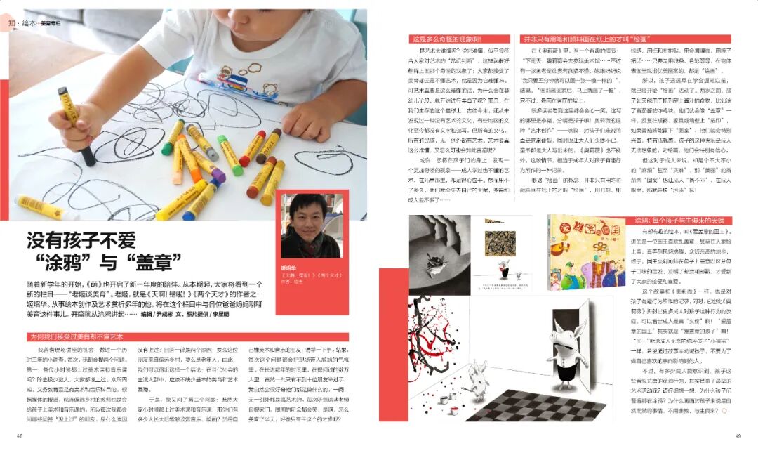 没有一个孩子是不喜欢画画的,《萌》从今年9月刊开始,新增了绘本美育栏目,跟童书插画作者姬炤华一起,聊聊怎么给孩子做美育。