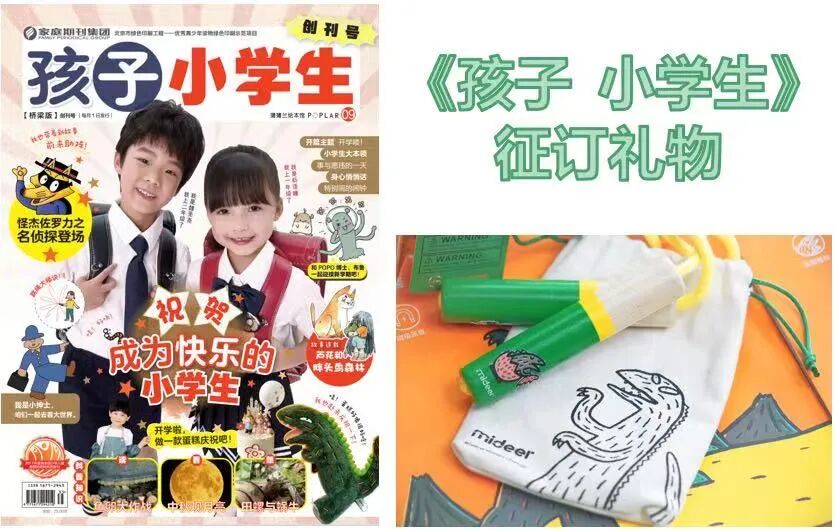 1. 订阅全年《孩子 · 小学生》,赠送宫西达也恐龙IP的跳绳一个(含收纳布袋),跳绳是所有小学生必备的运动器械,在9月刊里还有怎么跳绳可以跳的越快越多的“绝技传授”哦。