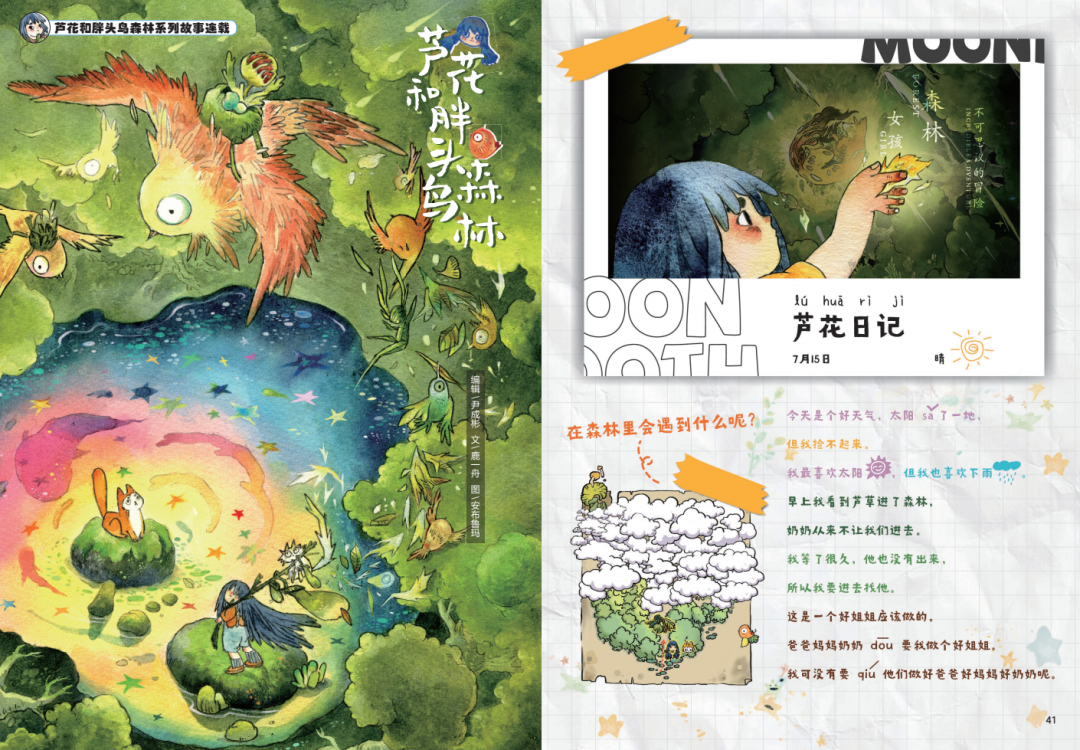 除了世界一流的绘本《怪杰佐罗力》,更让我们欣喜的是在杂志内看到了展现国内新锐奇幻画风的绘本。这种纯手绘充满想象力的画风,结合前方未知的探索剧情,更容易进入孩子们的内心世界,激发孩子的探索欲和想象力。