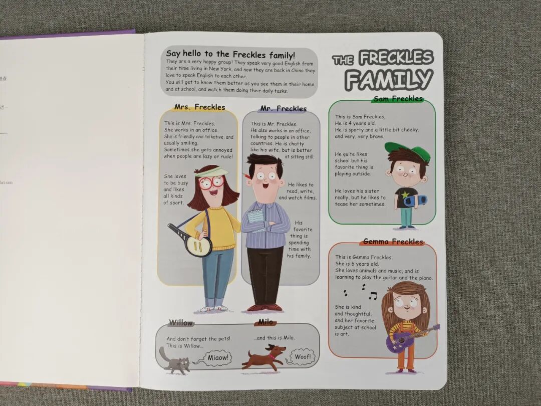 《小雀斑一家》指读发声书 —— 相比《字母书》,这套书更适合3~9岁的孩子进行沉浸式的场景学习,适合有少量英语词汇量,开始进入对话学习阶段的孩子。无需点读笔,直接用手指就可以点读。产品支持汉英双语切换,即便是让家中缺少英语能力的爷爷奶奶来使用,也可以辅助孩子一起边听边学。