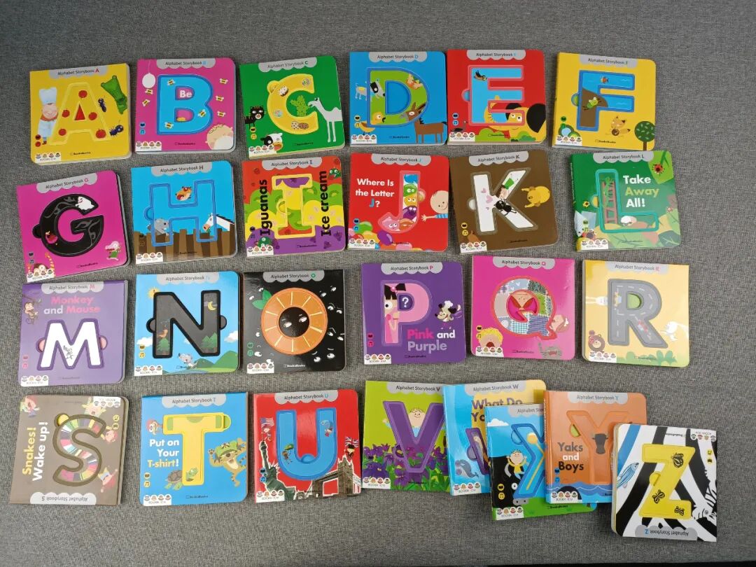 《字母故事书》—— 适合1~4岁,刚刚接触英语的孩子,26个字母26本书,100张认知卡,以基础词汇和短句为主。每本书用一个字母来拓展出3-10个该字母开头的基本单词。全套书包括115个重点单词,193个短句,涉及了844个基础词汇。同时,每本书附赠3个1分钟动画视频,2种音频模式(喜马拉雅音频和点读笔)供小朋友选择。26本书封面的字母可以变身磁性字母贴,让孩子边玩边学。
